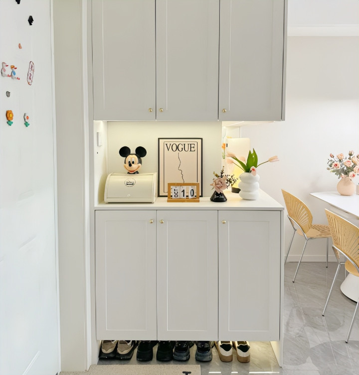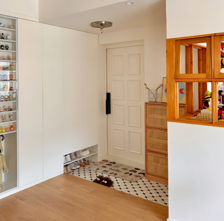 毕竟传统设计中,玄关这个位置,都是放个鞋柜,每天回家,玄关都堆满了鞋,看起来乱糟糟的,有异味不说,还会滋生细菌。
