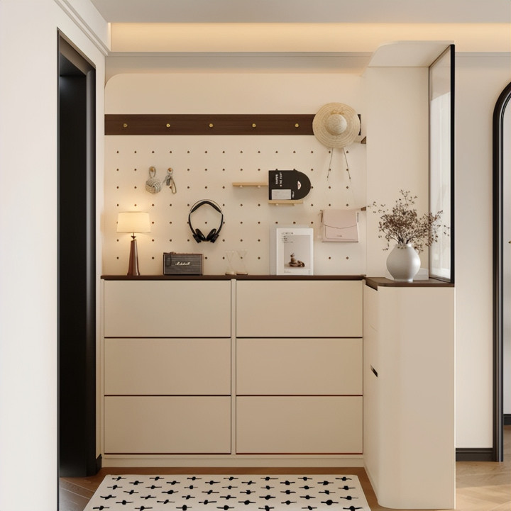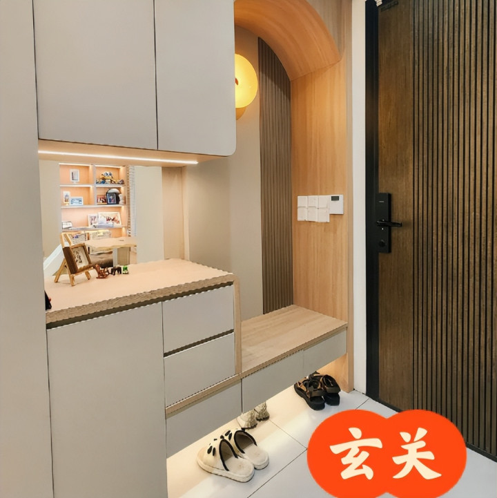 家里装修的时候,玄关这个位置,不想做传统装修设计的话,可以参考一下现在的新式做法,实在是太高级了,实用性也很强。